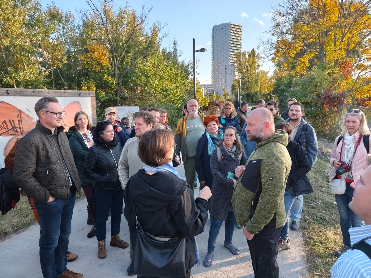 Megtekintettük a Práter vízijáték-rendszerének működését, majd a Freie Mitte zöldfelületi fejlesztésének és tervezésének koncepcióját mutatták be számunkra.